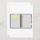 Un bloc de notas abierto y un lápiz y páginas en blanco con fichas. Este diseño parece realmente efectivo en esta invitación