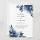 Tarjetas de invitación de boda florales elegantes con los detalles de su boda con ramos de flores y hojas abstractas de acuarela en tonos de azul índigo vibrante. Diseñadas para coordinar con nuestra colección de boda Abstract Indigo Floral.