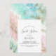 Esta abstracta invitación de 16 años a las acuarelas de verano es perfecta para una fiesta de 16 años. El diseño es elegante y exclusivo, con una acuarela azul claro, verde menta, rosa y púrpura pastel con toques de purpurina dorado, creando un ambiente de playa impresionante.