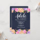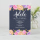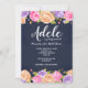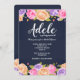 Una impresionante invitación floral con fondo azul marino y una abundancia de flores rosadas, lavanda y amarillas bordeando los bordes superior e inferior de la tarjeta. (Diseño de Freepik). <br/><br/>La tarjeta es fácil de personalizar con tus palabras, fuente, color de fuente y elección de seis tipos de papel.<br/><br/>¿No es exactamente lo que estás buscando? Todos nuestros productos pueden ser diseñados a medida para satisfacer tus necesidades sin cargo adicional.<br/><br/>Simplemente contáctanos en askcottonlamb@gmail.com<br/><br/>Productos coordinados disponibles: