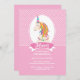 Invitación de cumpleaños a Chica de unicornio con arco iris rosado y chiflado