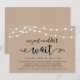 Hermosas Luces de Cadena de Granja Rústica Moderna, fuente de letra Script Negra en Fondo de Papel Kraft, Anuncio de Huida de Boda, tarjeta de invitación (Simplemente no podíamos esperar). Esto es perfecto para la recepción de su boda y la fiesta de celebración después de la boda. Agregue sus detalles en la fuente / letra coincidente.