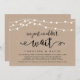 Hermosas Luces de Cadena de Granja Rústica Moderna, fuente de letra negra sobre fondo de papel Kraft, Anuncio de Huida de Boda, tarjeta de invitación (Simplemente no pudimos esperar). Esto es perfecto para la recepción de su boda y la fiesta de celebración después de la boda. Agregue sus detalles en la misma letra / letra.