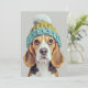 Invitación Acogedor beagle en un Gorra de invierno