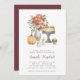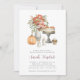 Invite a los huéspedes a disfrutar de un elegante brunch de otoño o otoño con ducha de novia con estas hermosas invitaciones acuáticas. El diseño incluye detalles de la celebración con letras modernas, coronado con un ilustracion de postres otoñales, flores silvestres, velas y una calabaza.