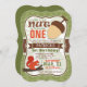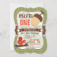 Divertidas nueces, bellotas y ardillas de bosque de bosques tema animal para niños, fiesta de cumpleaños invitan en un patrón de hojas verde sabio. Los colores son verde, marrón, naranja y blanco. Uno y el primer cumpleaños pueden ser personalizados a otros cumpleaños para niños pequeños, niños o bebés, bebés. ¡Una gran invitación para la fiesta de cumpleaños de niños o niñas!