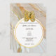 Con una hermosa mezcla de tonos de azul acuarela, naranja, dorado falso y marrón que se mezclan entre sí, una ilustración vintage de un pulpo de color mostaza amarillento descansa en el borde superior de un marco geométrico dorado con un inserto blanco que tiene una plantilla para tu declaración personalizada de la ocasión especial que estás celebrando. Este diseño gráfico elegante y sofisticado es ideal para todas las ocasiones especiales con temas de bajo el mar, océano, costa y playa. Personaliza las plantillas para adaptarlas a tu evento.