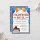 Esta invitación a hervir a la ballena dorada y azul es personalizable a tu evento especial. Con un fondo verde azulado con perlas de oro y langosta, este diseño es perfecto para tu cumpleaños, fiesta de compromiso, graduación o cualquier evento que puedas estar organizando. El personalizado ilustró cangrejos de arrastre junto con globos en la parte delantera, y le agrega un toque extra divertido a los tipos de letra del guión de serif y manuscritos. La palabra "langosta" también es personalizable a cualquier "hervir" que pueda estar teniendo, incluyendo marisco, langosta, cangrejo, etc.
