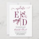 Invitación Actualización de boda con iniciales de Borgoña sen