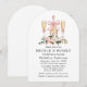 Botella de champán y copa con lazo de cinta rosa en aquarela moderna y elegante Invitación para Brunch y bur