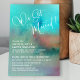 Este diseño es para los recién casados que aprecian un ambiente artístico. Sobre un lavado de acuarela abstracta y colorida, he colocado un gráfico de tipografía que dice "¡Nos casamos!", con una fuente de escritura moderna y arremolinada en blanco. La acuarela presenta un rico turquesa así como salpicaduras de azul, púrpura, rojo, salmón y verde. El gráfico se rotó y se colocó también en la parte posterior. Utilice los campos de plantilla para agregar sus propios detalles y haga clic para personalizar aún más si desea hacer alguna modificación adicional. Todas las capas están desbloqueadas para permitir todo el control de posicionamiento y tamaño que desee.