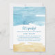 Esta tarjeta de invitación de acuarela de arena y mar "vamos a la fiesta" es perfecta para una despedida de soltera o una fiesta de compromiso con tema de playa. El diseño abstracto presenta textura de acuarela amarilla y azul que se organiza para evocar las vibraciones del océano junto al mar.