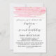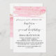 Este bautismo de color rosa y oro y la tarjeta de invitación para el segundo cumpleaños son perfectos para un bautismo elegante de niña. El lujoso diseño femenino presenta una textura color agua rosa claro con un toque de polvo falso purpurina de oro y un elegante tipo de letra de escritura caligráfica. Nota: Este diseño no tiene purpurina de oro real. Es un gráfico de alta calidad hecho para parecerse al brillo dorado.