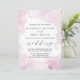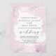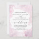 Esta tarjeta acuarela rosa y morada es perfecta para un boda moderno. El diseño presenta una acuarela rosa y suave con texto gris.