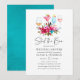 Ramos florales de acuarela boho chic rosa y azul turquesa para invitaciones de fiesta de compromiso/fiesta para parejas/ensayo de boda diseñadas para ser personalizadas rápida y fácilmente según los detalles de su evento.