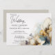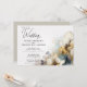 Impresionante exhibición de calas en acuarela, detallada con tinta dorada y negra. Fondo de lavado de acuarela soñadora - floral en tonos suaves de dorado y beige cremoso, lavado de fondo en gris azulado polvoriento y apagado. Fácil de personalizar con tus detalles específicos.