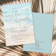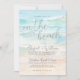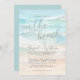 Sencillo Verano Acuarela Marítima En La Invitación A La Boda De Playa. Un agradable fondo azul y color marrón marrón marcan el escenario de un elegante boda costero. La obra de arte muestra un acercamiento a la orilla de las suaves olas oceánicas, ofreciendo una visión suave y ligeramente abstracta de un entorno costero. La frase "en la playa" aparece en la tipografía de escritura dulce en la parte superior, con el resto de los detalles en una fuente moderna y limpia, lo que le da a la disposición un ambiente informal pero refinado. Las fuentes se muestran en gris oscuro, pero se pueden cambiar a cualquier color. La parte trasera de la invitación incluye espacio para un escaneado código QR que enlaza a su sitio web boda, donde los invitados pueden recibir confirmación o obtener más información sobre la celebración. Disponible como una invitación impresa o un archivo digital descargable para enviar e-mail o imprimir localmente. Todos los textos, tipos de letra y colores se pueden personalizar para que coincidan con el estilo boda.
