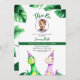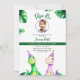 ¡Lanza hacia una aventura prehistórica! Celebra con nuestro adorable diseño de color de agua T-Rex. Este diseño de personalizable, rodeado de hojas verdes, es perfecto para un fiesta de dino-ácaro. Añada la foto de su hijo para darle un toque personal.