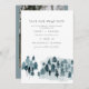 Esta plantilla de "salvar nuestra nueva fecha" de boda presenta árboles de pino invernales de color azul pizarra rústico y salpicaduras de acuarela. Edite fácilmente la mayoría de la redacción de esta invitación para satisfacer mejor sus necesidades. Agregue su foto al reverso para un toque personal.
