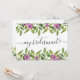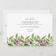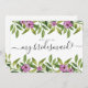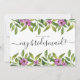 Garland color de agua y escritura cursiva estilo caligrafía caligrafía morada de boda de primavera floral "¿Serás mi dama de honor?" tarjeta. La parte superior e inferior está cubierta por un huerto de flores violetas.