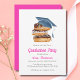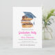Este diseño acuático cuenta con una deliciosa pila de donuts de chocolate y vainilla con tapa de graduación, lo que lo convierte en la invitación perfecta para su celebración.