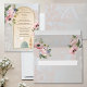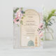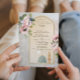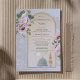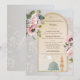 Invitación de boda islámica con acuarela de Masjid An-Nabawi y amapolas rosadas.