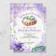 Celebra el Mardi Gras con esta invitación de fiesta imprimible que presenta un pastel de rey en acuarela sobre un fondo de viñeta en acuarela púrpura. Cuentas y cintas de color dorado, verde y púrpura están esparcidas alrededor de la invitación con dos máscaras de Mardi Gras en la parte inferior de la misma. El acento de la pieza es el fleur de lis en acuarela. Perfecto para una celebración de Mardi Gras o Martes de Carnaval, una ducha de novia o boda con tema de Mardi Gras, una despedida de soltera en NOLA o una celebración de cumpleaños. Disponible con productos coincidentes.