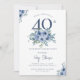 Invitación Acuarela Dusty Blue Floral 40ª Moda Cumpleaños