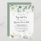 Este sorbo de vegetación de eucaliptos acuáticos y la invitación a ver son perfectos para una reunión rústica con el bebé fiesta. Este diseño artístico cuenta con un follaje verde eucalipto de color agua, de dibujos a mano, que inspira la belleza natural.