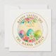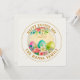 Envía un hermoso saludo primaveral con esta Tarjeta de Pascua Floral Personalizada. El diseño presenta un impresionante y delicado wreath de rosas rosadas, lirios blancos y exuberante follaje pintado a mano con acuarela, rodeando un trío de huevos de Pascua decorativos con patrones en rosa vibrante, turquesa y verde lima. Situada sobre un fondo limpio de color crema con un elegante marco circular en tono dorado, esta tarjeta ofrece un aspecto sofisticado y atemporal.