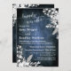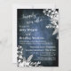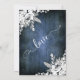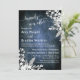 Aquí tienes una encantadora invitación para tu evento exclusivo después de la recepción de la boda. El fondo estaba cubierto primero con un gráfico azul oscuro, texturizado y terroso, que presenta vetas de madera y líneas vintage. Las esquinas estaban acentuadas por salpicaduras de acuarela floral en blanco y escala de grises/negro. Tus detalles aparecen en blanco brillante. Para complementar la tipografía sans-serif utilizada para tu texto editable, he añadido las palabras clave "felices para siempre" más los acentos "y", y "amor" en la parte posterior, utilizando una fuente de caligrafía moderna y bonita.
