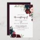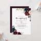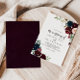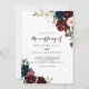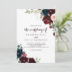 Esta acuarela ilustrada otoño floral el boda de la invitación es perfecto para una boda elegante. El diseño presenta acuarelas pintadas a mano color azul marino, burdeos, rojos, rosas ondulados y peonías con elegantes hojas verdes, inspirando la colorida e idílica belleza del otoño.