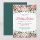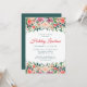 Una elegante invitación de Navidades de temporada con flores de color acuático de color rosa, melocotón y púrpura en la vegetación invernal y una sencilla tipografía moderna de color rojo y verde oscuro. Puedes personalizar el tipo de evento (almuerzo, brunch, té fiesta, fiesta de cumpleaños, etc.).