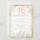 Romántico y elegante acuarela floral dulce de 16 años invitación a la fiesta de 16 cumpleaños con un suave y pintado a mano color rosa pastel y flor verde de menta clara disposición y caligrafía moderna y de escritura de moda y marco dorado. Añadir la foto al fondo