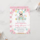 Este adorable diseño presenta un dulce panda de acuarela en un entorno circense caprichoso, rodeado de suaves acentos florales rosados y detalles pastel juguetones. Elementos festivos como banderines, globos y un encantador carro decorativo crean un ambiente alegre y celebratorio, mientras que delicadas rosas y vegetación añaden un toque de elegancia. La paleta de colores pastel claros le da al diseño una apariencia suave y soñadora, realzada por sutiles acentos dorados que sugieren un destello. Perfecto para un baby shower, este diseño combina el encanto de un animal adorable con un divertido tema de circo para una celebración mágica y memorable.