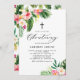 Invite a los huéspedes a su evento con esta invitación a disfrutar de este personalizable tropical. Cuenta con flores de agua tópicas y hojas con un patrón tropical a juego. Personalice esta invitación a bautizar acuarela agregando sus propios detalles de eventos. Esta encantadora invitación tropical es perfecta para los bautizos de verano.