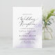Esta invitación de recepción de boda morada con acuarela es perfecta para una fiesta moderna después de una fuga. El diseño simple y clásico presenta un toque de color lavanda pastel con un estilo elegante minimalista. Las tarjetas de RSVP se venden por separado, o puedes agregar la información de RSVP al reverso de la tarjeta.