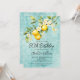 Elegante invitación de cumpleaños 80 con tema de limón acuático, con un ilustracion floral y un fondo verde azulado. Personalice el texto con los detalles del fiesta.
