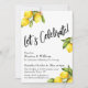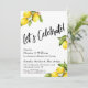 Esta tarjeta presenta un gráfico de tipografía que dice "¡Vamos a celebrar!" que se representó en una fuente de escritura a mano alzada y casual. Alrededor de los bordes he colocado una variedad de racimos de limones pintados con acuarela con vegetación adjunta. Todo el texto editable aparece en una tipografía serif versátil que se puede cambiar si lo desea. Más limones se colocaron en la parte posterior de la tarjeta. Todas las capas se agregaron por separado para que pueda tener el máximo control de diseño. Rote o reposicione cualquier parte del diseño que considere adecuada para editar. No dude en hacérmelo saber si tiene solicitudes especiales con las que pueda ayudar. // 105 //