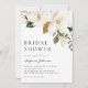 Invite a los huéspedes a su evento con esta invitación a la ducha de personalizable. Cuenta con una magnolia blanca acuarela y con acentos verdes. Personalice esta invitación a la ducha de novias florales añadiendo sus detalles. Esta ducha de novia magnolia es perfecta para cualquier tema o temporada. Los textos son totalmente editables para cualquier evento.