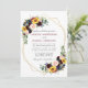 Moderna y elegante acuarela Borgoña Marsala Floral Geometric Gold Frame Wedding Invitation incluye rosas de color burdeos, rosas rosas, flores rojas, flores azules, girasoles, hojas de eucalipto y vegetación botánica.