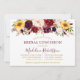 Moderno y elegante acuarela Burgundy Floral Bridal Shower Luncheon Invitation Card incluye burdeos, rojas, rosas rosas rosas, girasoles y hojas de vegetación botánica. Guión de caligrafía de moda. Texto dorado. Borgoña de vuelta.