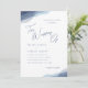Esta elegante invitación a la moda y a la boda minimalista presenta sutiles olas oceánicas, hechas con acuarelas, sobre un lienzo blanco...con los detalles de su boda diseñados en escritura azul y caligrafía tipada.