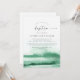 Esta moderna invitación al bautismo verde acuarela es perfecta para un bautizo contemporáneo y elegante. La colección de diseño minimalista, clásico y elegante presenta trazos de pincel de color agua en tonos bonito.