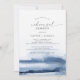 Esta moderna invitación a una cena de color azul acuático es perfecta para un elegante ensayo boda contemporáneo. La colección de diseño minimalista, clásico y elegante presenta trazos de pincel de color agua en tonos bonito.