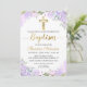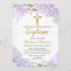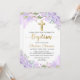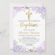 Invitación Acuarela Morado Floral Dorado Script Baptismo