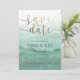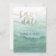 Invitación acuarela para guardar la fecha con acentos dorados.