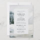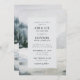 Elementos: pintura acuarela de lago rústico de montaña en invierno; elegantes fuentes serif y sans serif. Colores: azul, verde, gris, blanco, desblanco. Temas: montañas, lagos, boda al aire libre, bodas de invierno, elegante, rústico, impresionista, acuarela, montañas nevadas. Colección: Colección Rustic Mountain Watercolor Boda. Tipo de producto: Invitación clásica - Vertical