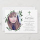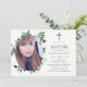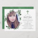 Verdor de bosques silvestres de moda Baptism o tarjeta de invitación a la cristiandad diseñada para ser rápida y fácilmente adaptada a sus necesidades específicas. Se recomienda una foto en forma de retrato.