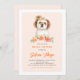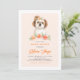 Invite a los invitados a su evento con esta invitación de cumpleaños de personalizable. Cuenta con ilustraciones acuáticos de un tierno Shih Tzu y flores de melocotón. Personalice agregando sus detalles. Esta encantadora invitación a los shih tuzu es perfecta para cumpleaños, duchas de bebé y otros eventos.
